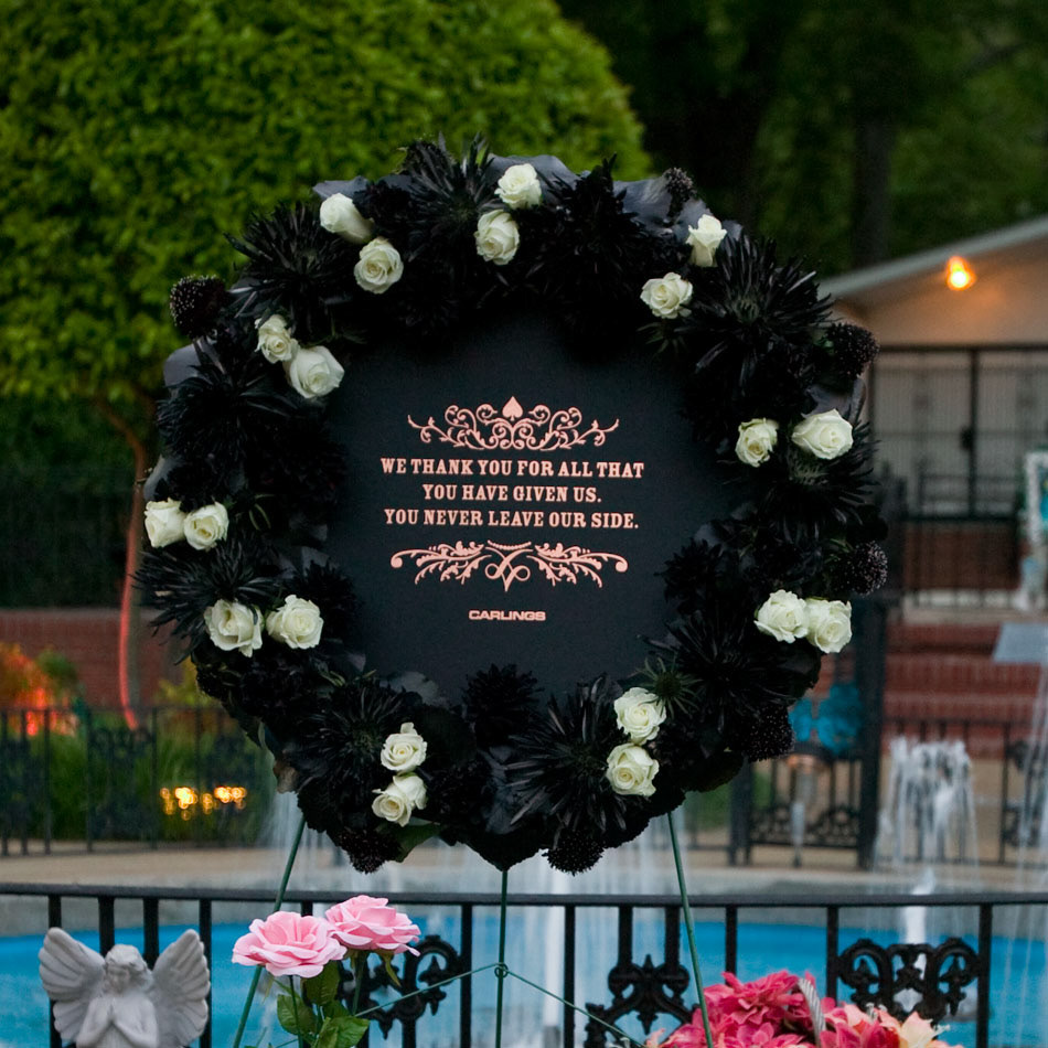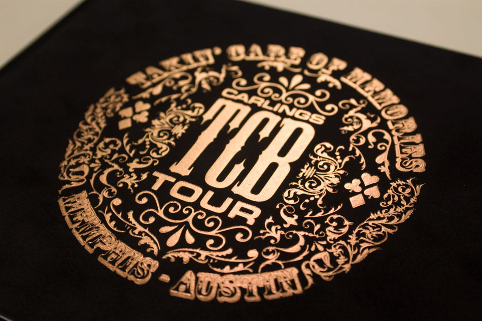 Printed material for kick-off, featuring embossed gold foil, ornaments, varnish, velour and flowers!